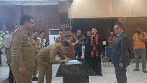 RADAR24.co.id. —Wali Kota Bitung, Hengky Honandar, SE., melantik dan mengambil sumpah/janji tujuh pejabat struktural di lingkungan Pemerintah Kota (Pemkot) Bitung, Senin (22/9/2025) sore.