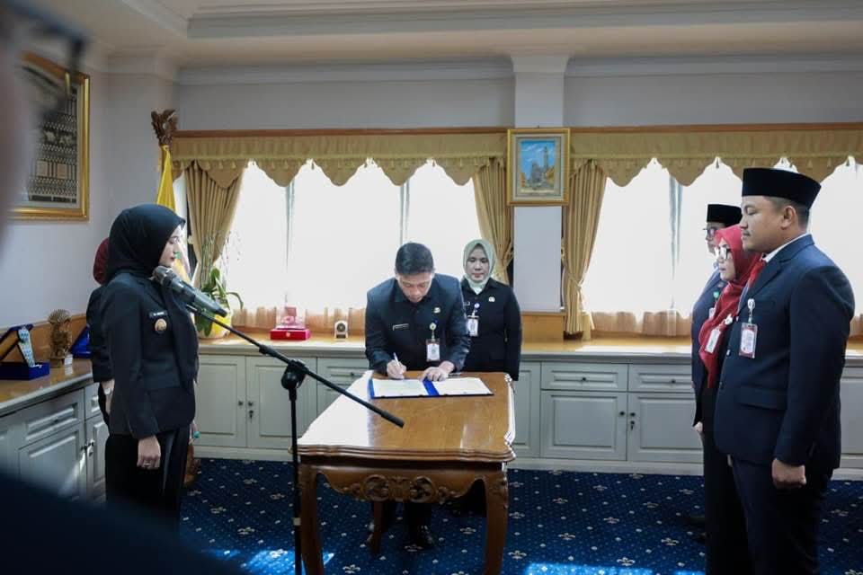 RADAR24.co.id — Wakil Gubernur Jihan Nurlela melantik dan mengambil Sumpah/Janji Jabatan Pengawas dan Jabatan Fungsional di lingkungan Pemerintah Provinsi Lampung, di Ruang Kerja Wakil Gubernur, Kamis (25/09/2025).