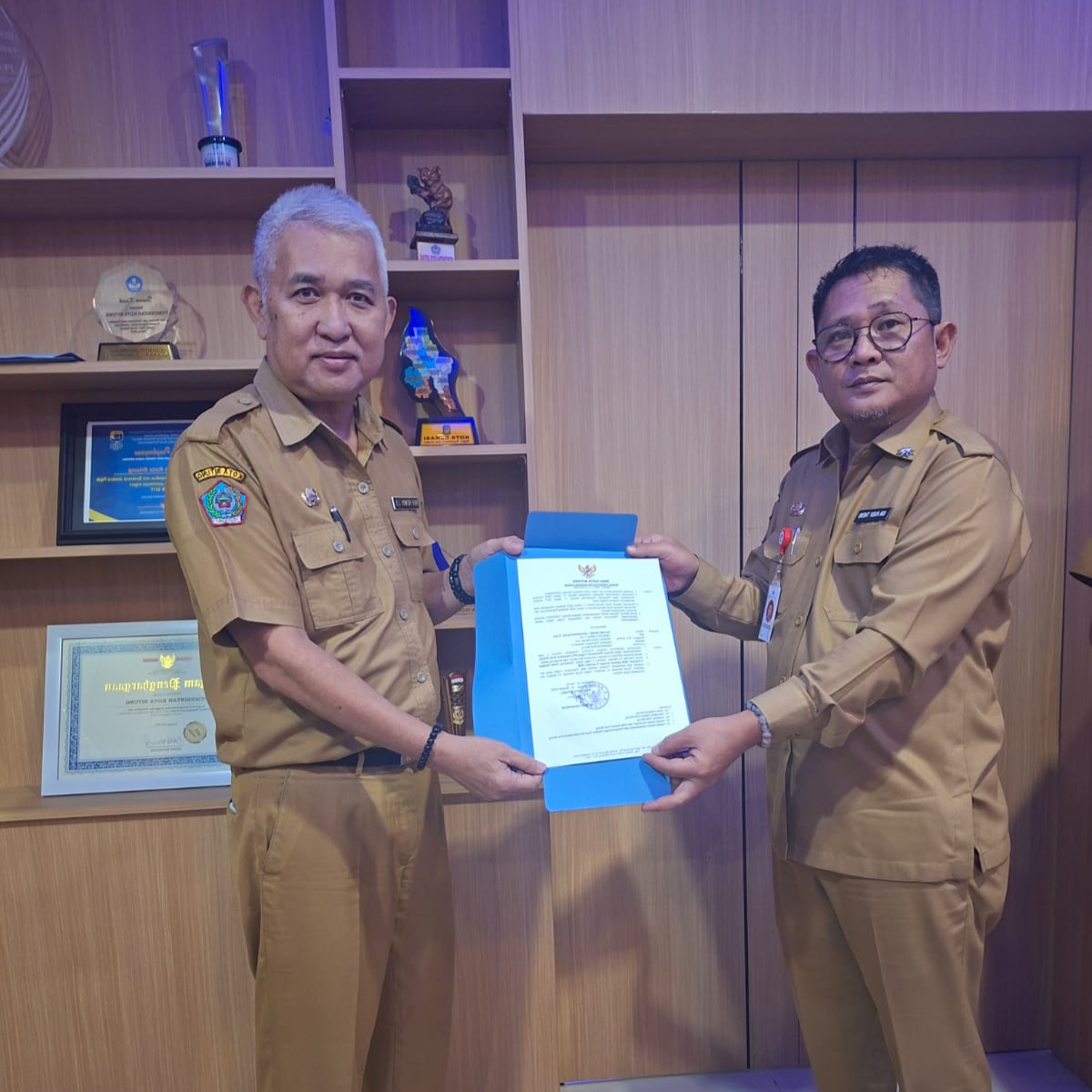RADAR24.co.id. — Sekretaris Daerah (Sekda) Kota Bitung, Ir Ignatius Rudy Theno, ST., MT., MAP., secara resmi menyerahkan Surat Keputusan (SK) Pelaksana Tugas Inspektur kepada Rayne Suak dalam sebuah prosesi internal yang berlangsung di Ruang Kerjanya, Selasa (7/10/2025).