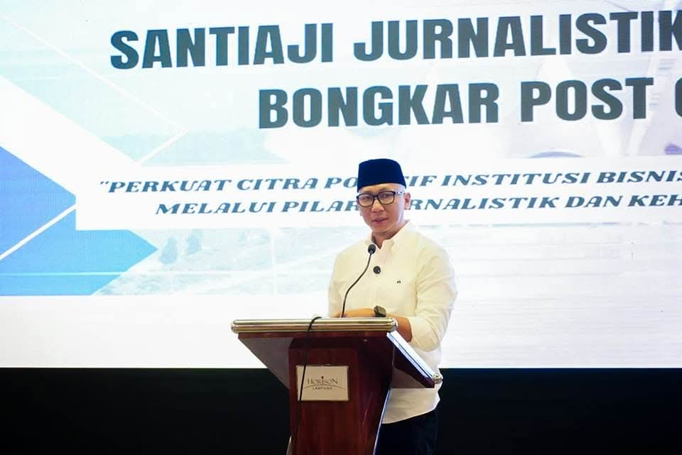 RADAR24.co.id — Gubernur Lampung, Rahmat Mirzani Djausal membuka secara resmi kegiatan Santiaji Jurnalistik dan Kehumasan Bongkar Post Group 2025 bertempat di Ballroom Hotel Horison, Sabtu (18/10/2025).