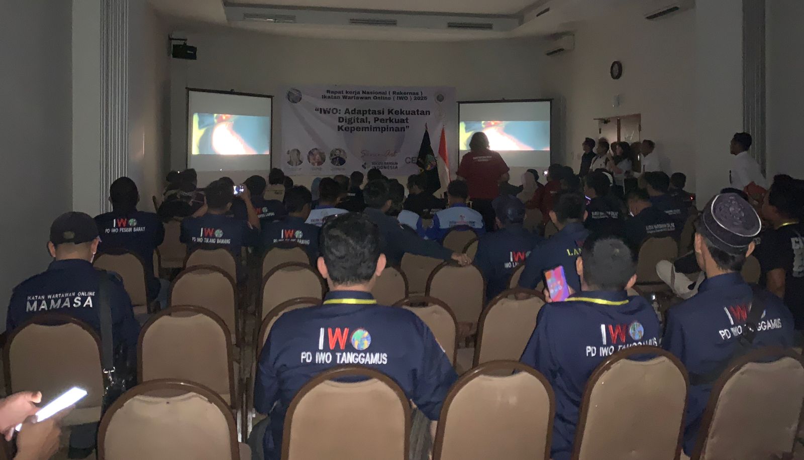 Antusias peserta Rakenas IWO yang semuanya adalah wartawan yang bekerja di berbagai media online menegaskan dukungan tanpa syarat terhadap perjuangan melawan KDRT dan mendukung pemberdayaan perempuan.