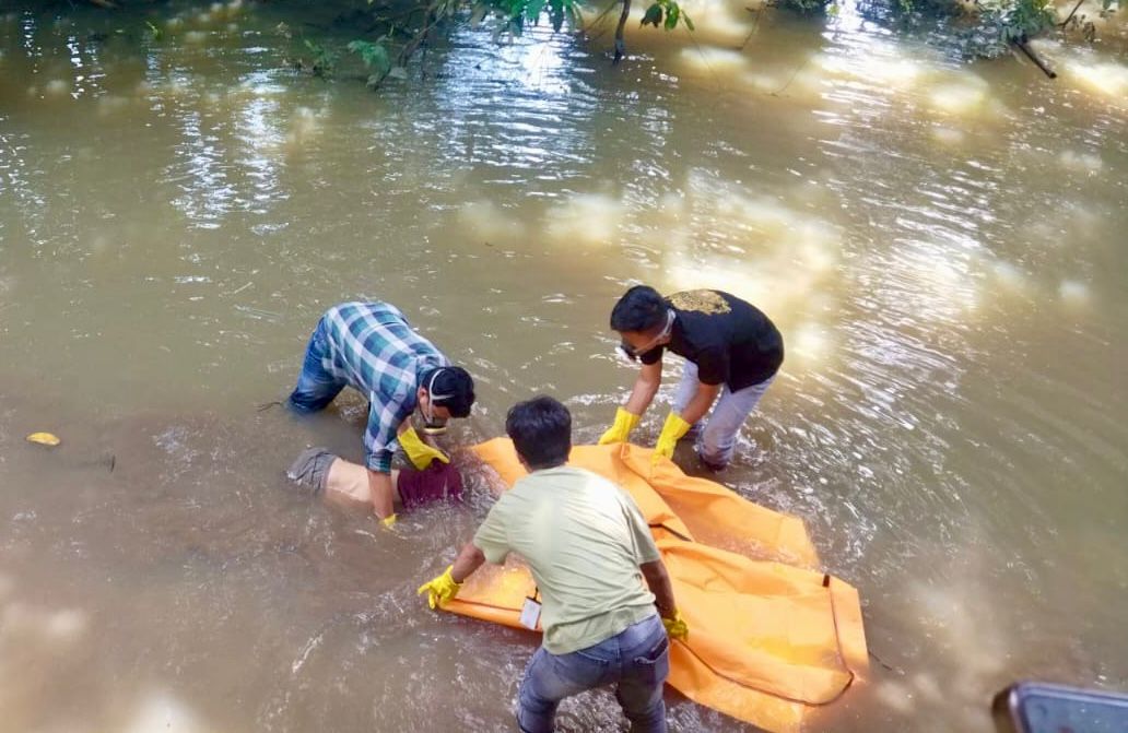Menurut keterangan saksi, korban pertama kali ditemukan oleh warga yang sedang mencari belut di sungai.
