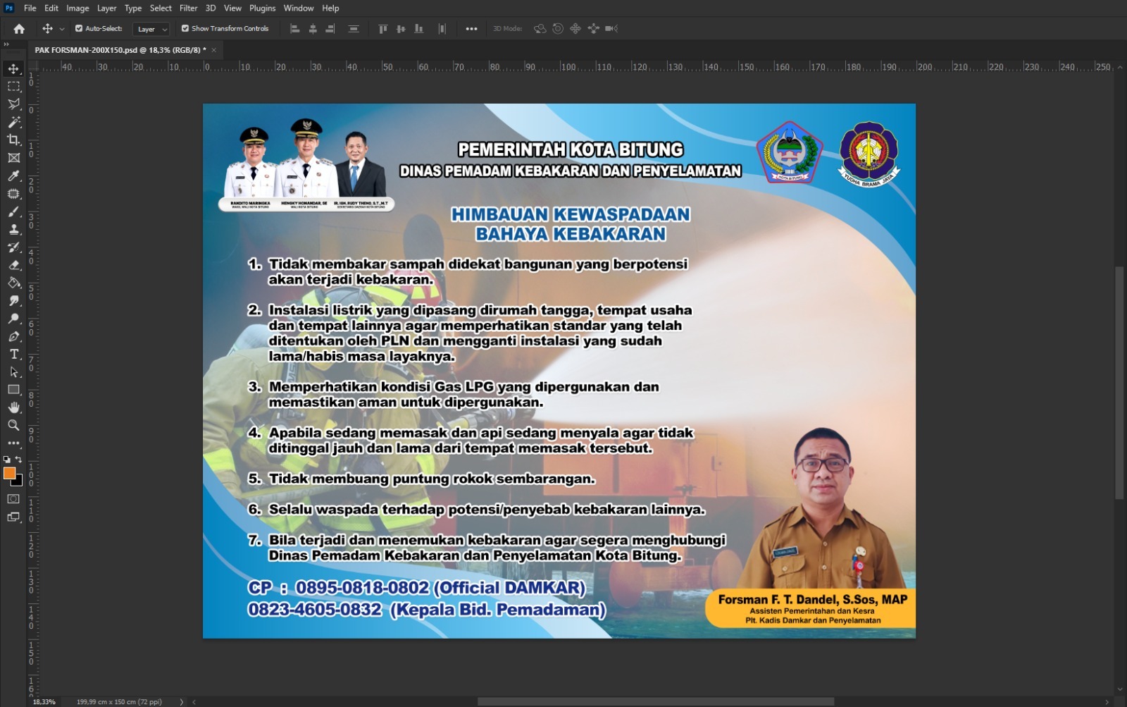 7.Bila terjadi dan menemukan kebakaran agar segera menghubungi Dinas Pemadam Kebakaran dan Penyelamatan Kota Bitung.