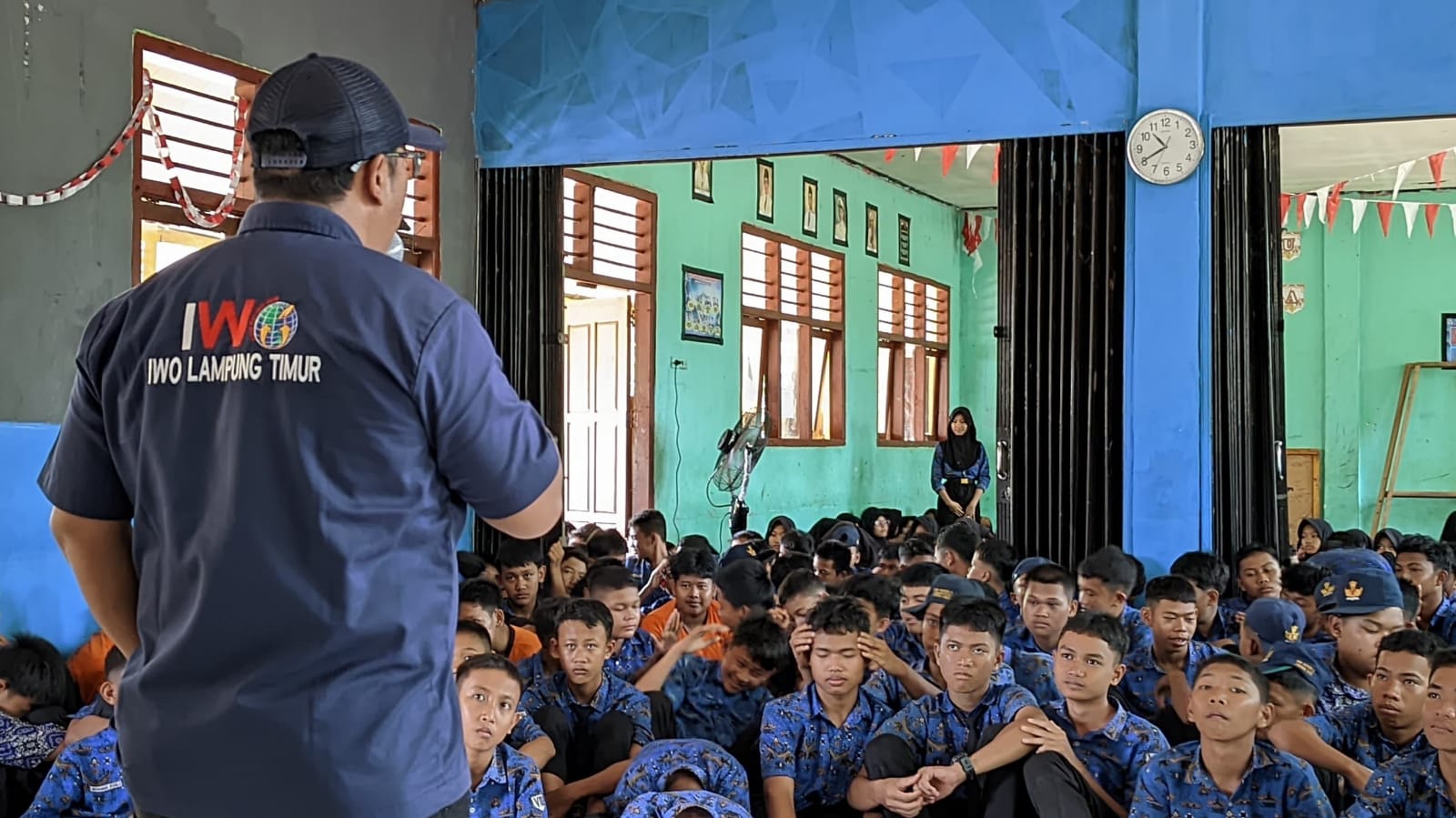 RADAR24.co.id — Ikatan Wartawan Online (IWO) Lampung Timur sosialisasi di Sekolah Menengah Pertama Negeri (SMPN 2) Kecamatan Labuhan Ratu, Lampung Timur, Lampung, Kamis (20/11/2025).