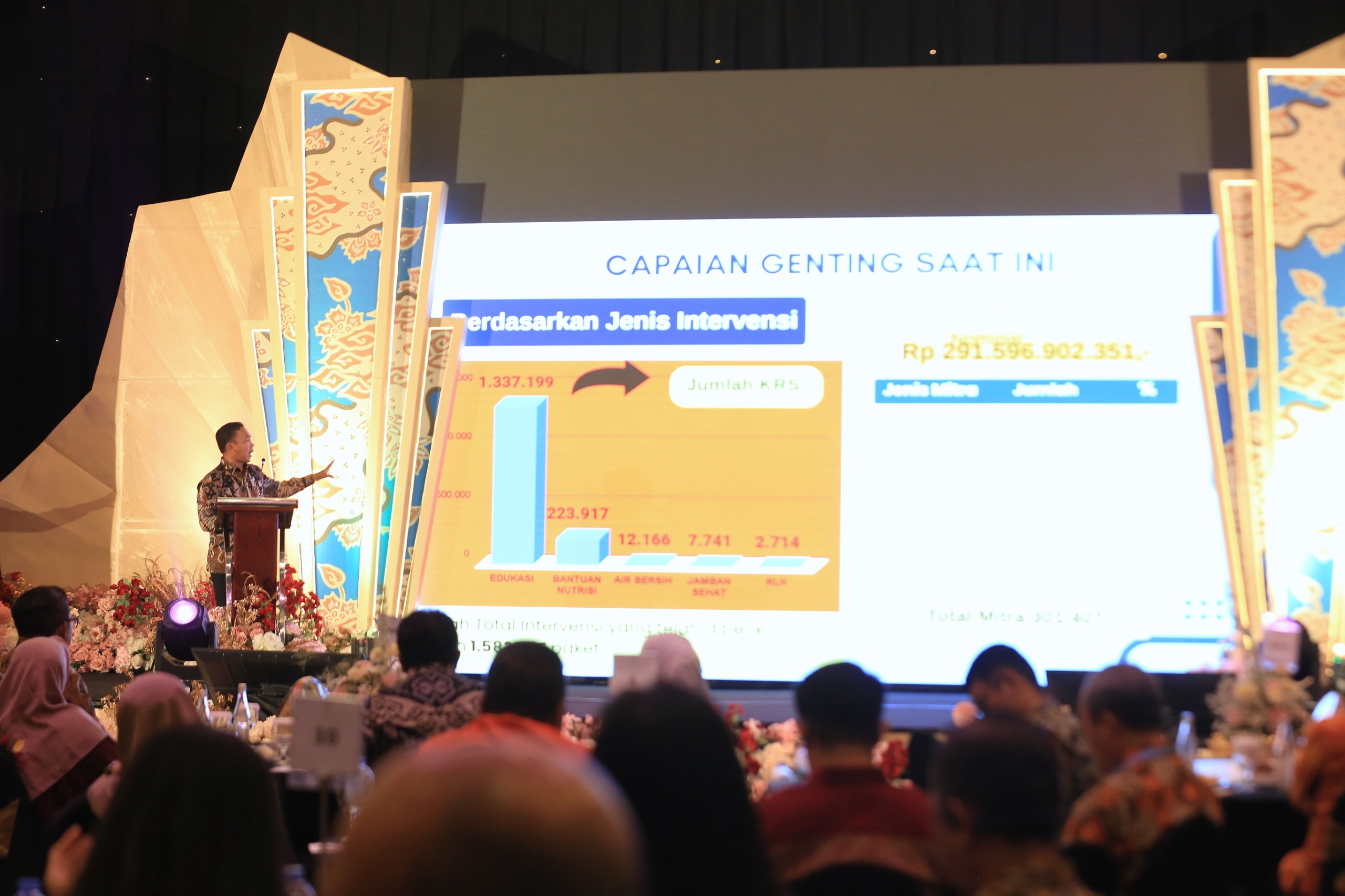 Acara yang dihadiri lebih dari 300 perwakilan kementerian/lembaga, pemerintah daerah, BUMN/BUMD, dunia usaha, perguruan tinggi, organisasi masyarakat, komunitas hingga media tersebut dibuka dengan penayangan video perjalanan satu tahun GENTING. Tayangan tersebut menampilkan beragam intervensi, mulai dari pemenuhan gizi, penyediaan air bersih, perbaikan sanitasi, hingga edukasi pencegahan stunting yang dilakukan bersama para mitra di seluruh Indonesia.