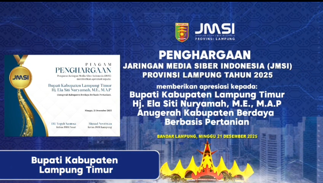 – Bupati Lampung Timur, Hj. Ela Siti Nuryamah, M.E., M.A.P. Anugerah Kabupaten Berdaya Berbasis Pertanian.