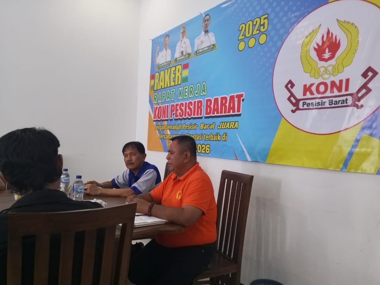 Raker yang berlangsung di kantor koni Pesisir Barat dihadiri jajaran pengurus KONI Pesisir Barat, beberapa perwakilan cabang olahraga (cabor).