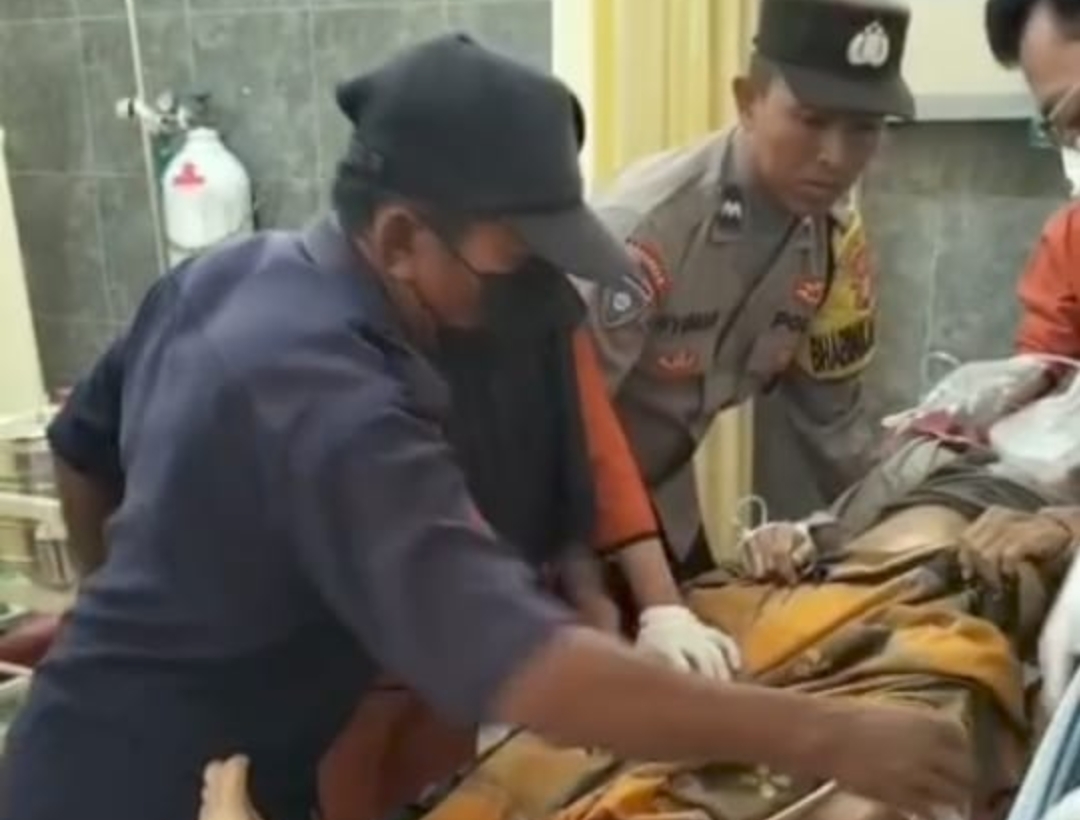 ” Benar mas, kejadiannya tadi l, saat ini pak kades sudah di bawa ke Rumah Sakit” Ujar Khoirudin warga Desa Setempat.