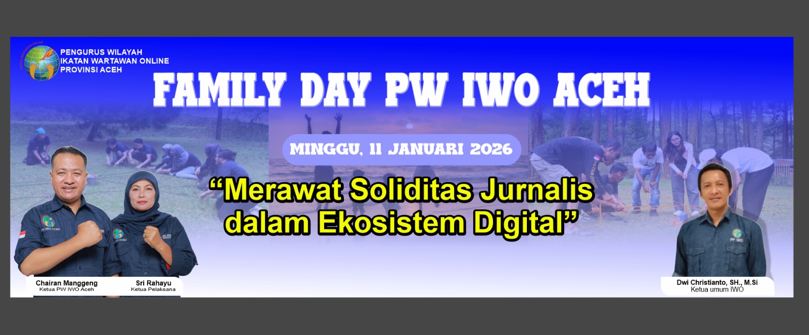 RADAR4.co.id — Pengurus Wilayah Ikatan Wartawan Online (PW IWO) Aceh kembali menggelar kegiatan Family Day sebagai upaya mempererat soliditas dan kekompakan antar anggota. Kegiatan penuh kehangatan ini dijadwalkan berlangsung di Pantai Riting, Lhoknga, Aceh Besar, pada Minggu, 11 Januari 2026.