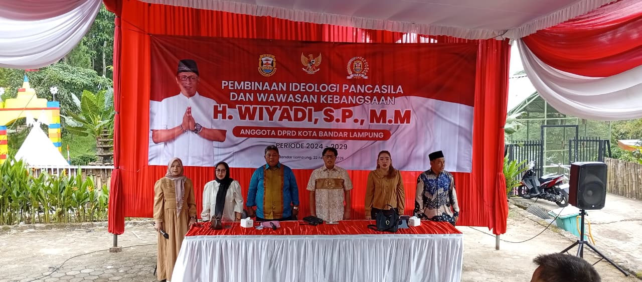 RADAR24.co.id — Pimpinan DPRD Kota Bandar Lampung Wiyadi, menggelar kegiatan Pembinaan Ideologi Pancasila (PIP) dan Wawasan Kebangsaan di Lengkung Langit, Sumberejo, Kemiling, Kota Bandarlampung, Minggu (22/02/2026).