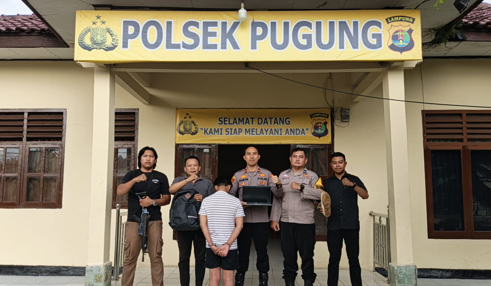 Mengetahui kejadian tersebut, Ayu Enita kemudian menghubungi Sri Rindi Antika selaku pemegang laptop tersebut. Atas kejadian itu, korban kemudian melaporkan peristiwa pencurian ke Polsek Pugung.