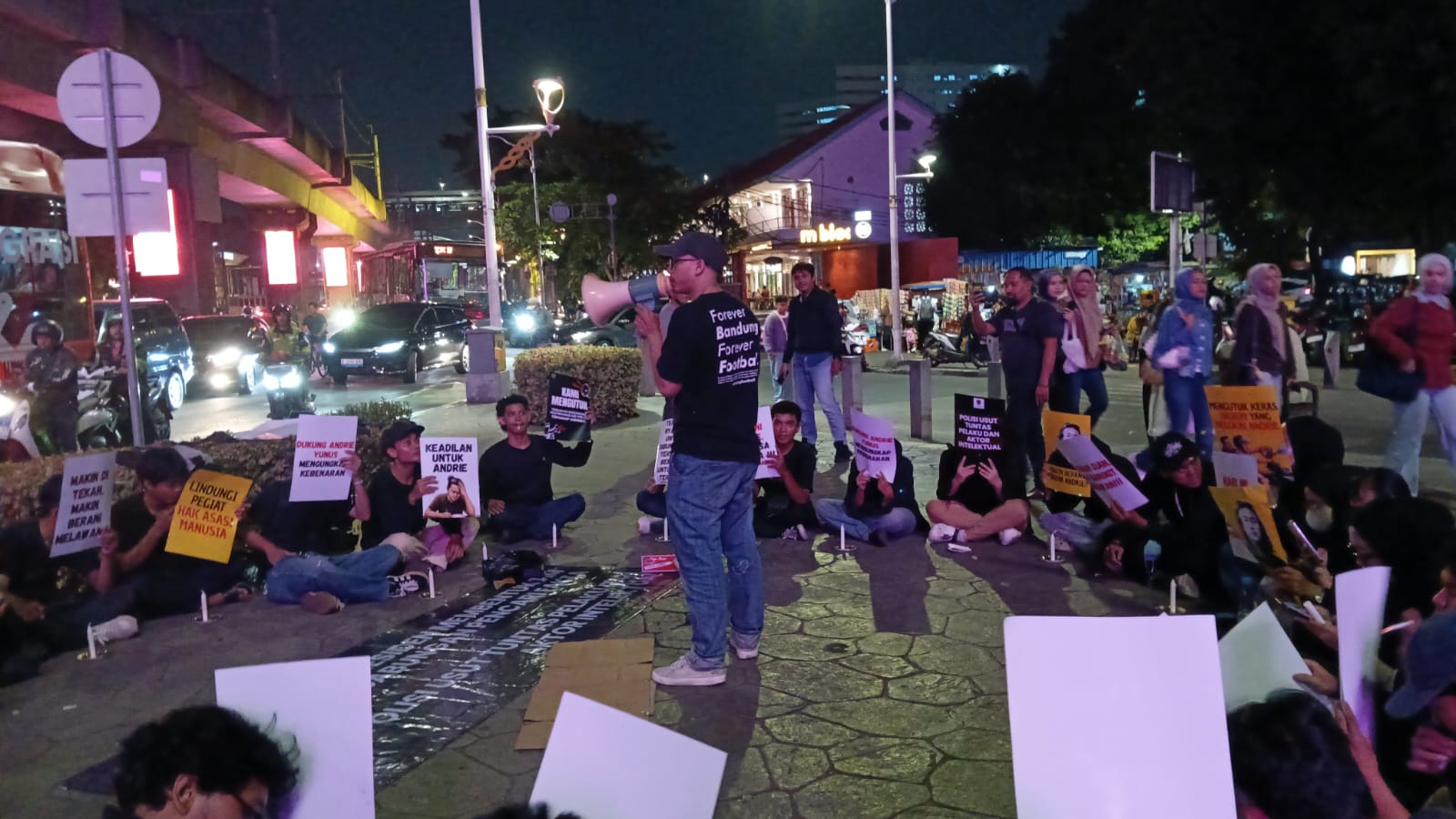 Kecaman itu disampaikan dalam aksi solidaritas yang digelar di Taman Literasi Blok M pada Senin (16/3/2026).