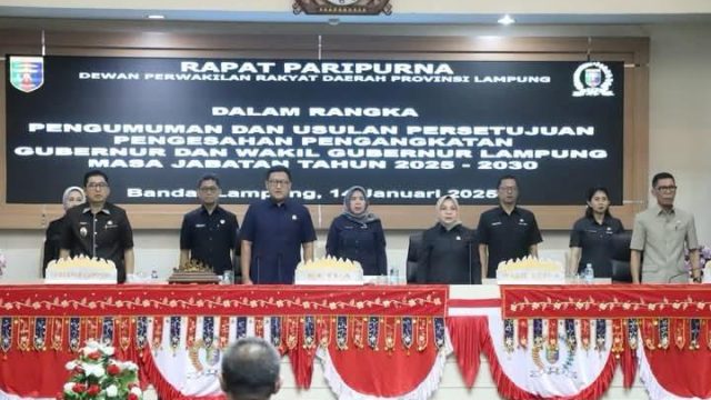 RADAR24.co.id — Penjabat Gubernur Lampung diwakili oleh Pj. Sekretaris Daerah Provinsi Lampung, Fredy menghadiri Rapat Paripurna DPRD Provinsi Lampung dalam rangka Pengumuman dan Usulan Persetujuan Pengesahan Pengangkatan Gubernur dan Wakil Gubernur Lampung Masa Jabatan Tahun 2025-2030 bertempat di Ruang Sidang DPRD Provinsi Lampung, Selasa (14/01/2025). Dari hasil Rapat Paripurna yang dipimpin oleh Ketua DPRD […]