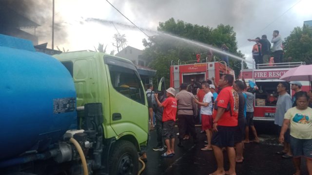 RADAR24.co.id. — Perusahaan Umum Daerah (Perumda) Air Minum Duasudara Kota Bitung, menerjunkan dua unit mobil tangki air untuk memadamkan kebakaran Klinik dan gudang penyimpanan kain, yang berlokasi di Kelurahan Madidir Ure, Kecamatan Madidir, Sabtu (15/11/2025) siang. Direktur Perumda Air Minum Duasudara, Alfred Salindeho, SE., MM., mengatakan bahwa tim bergerak setalah mendapat informasi dari tim […]