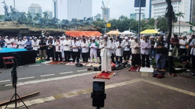 RADAR24.CO.ID, Jakarta — Sekelompok massa yang hendak menggelar aksi demonstrasi terkait gugatan Pilpres 2024 di Mahkamah Konstitusi (MK), melaksanakan Salat Jumat berjamaah di Patung Kuda, Jalan Medan Merdeka Barat, Jakarta Pusat, Jumat (19/4). Dikutip dari CNNIndonesia.com, massa demo laki-laki, membuat shaf salat dengan beralaskan sajadah hingga terpal. Eks Ketua Umum PP Muhammadiyah, Din Syamsuddin menjadi […]